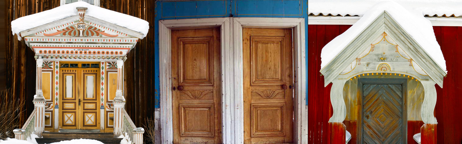 The most elegant woodwork can be found in Färila and Ljusdal. In Alfta, there are fine fully-paneled rooms and doors with the special Alfta tulip on the middle pane – a decoration that originated from the pulpit in the church at Alfta. In north-east Hälsingland, the woodwork is simpler and less detailed but still well-crafted. The woodwork in Järvsö is the most old-fashioned, with powerful symmetrically-profiled door-cases that were common well into the 1800s.