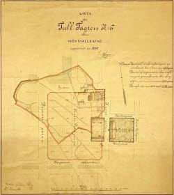 Kartan, som ritades år 1890 av A. Sigell, visar tomten Tull-Tägten n:o 6 i Hudiksvall inringat i ljust rött. Tomten ägdes av åkaren J. Hansson och köptes av Hudiksvalls lasarett för 17 000 kronor år 1899.