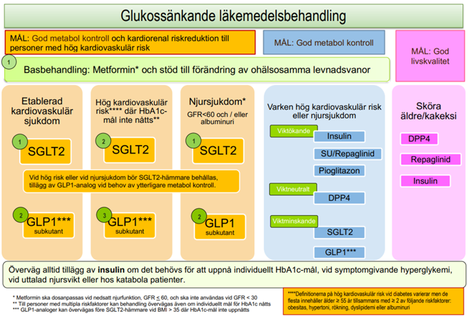 Observera att när det gäller behandling med GLP-1 analoger är det den subkutana beredningsformen som avses i behandlingsrekommendationen ovan.