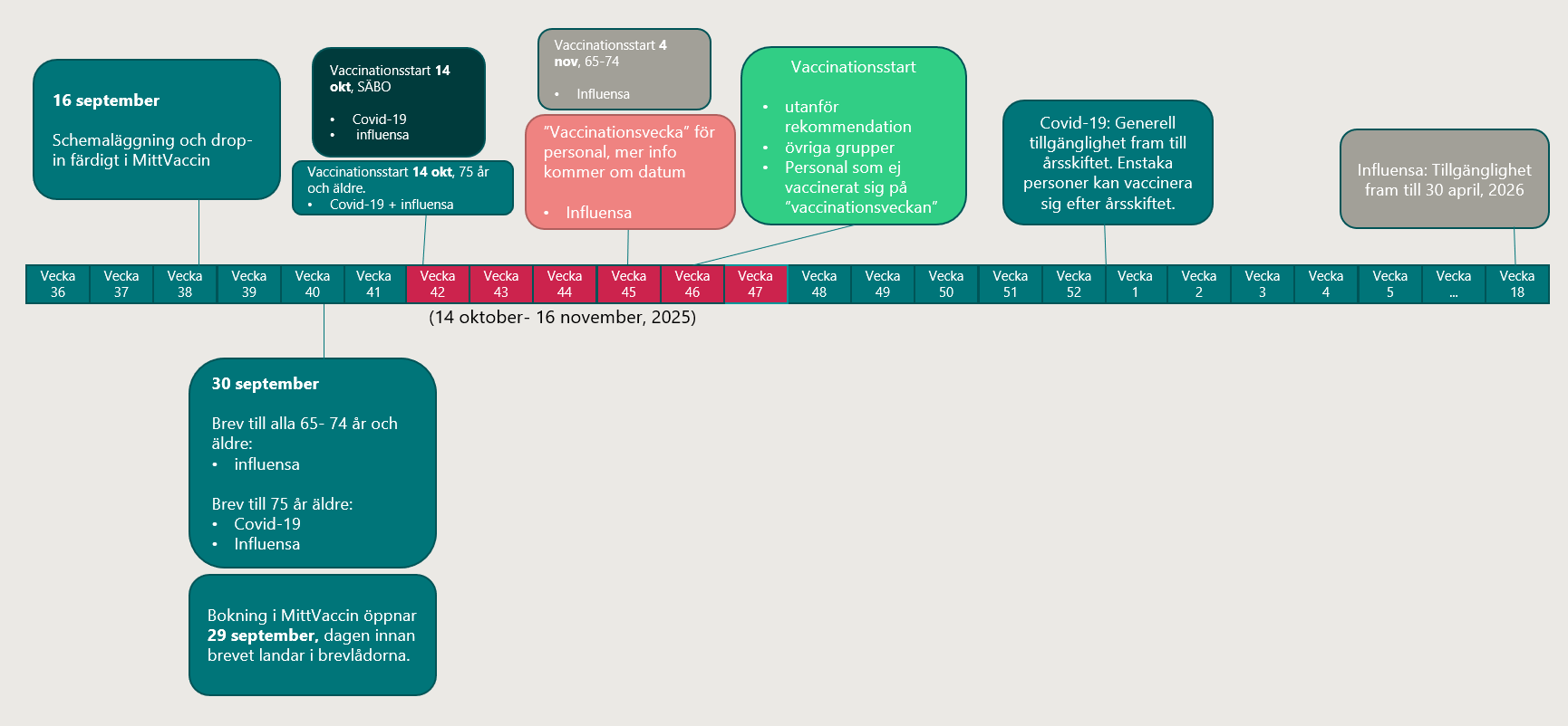 - Den 14 oktober startar vaccinationerna mot covid-19 (och influensa vid samvaccination).