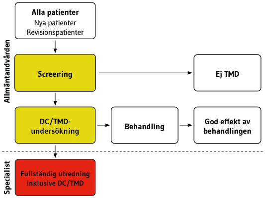 Nedan visas en översikt av hela flödet från screening till remiss för patienter med orofacial smärta och käkfunktionsstörning.