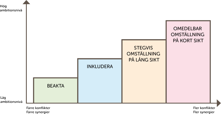 De ekonomiska, sociala och miljömässiga dimensionerna av hållbarhet är ömsesidigt beroende av varandra - de är odelbara. För att integrera hållbarhet i det regionala tillväxt- och utvecklingsarbetet måste därför alla aspekter av hållbarhet synliggöras och hanteras genom att söka positiva samband (synergier) och lyfta negativa samband (försvagningar) mellan hållbarhetsdimensionerna.